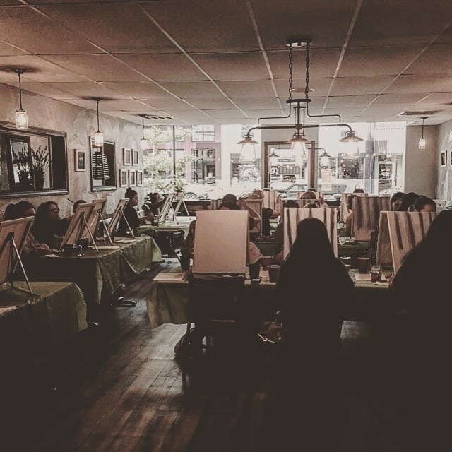 Back to 2015 June 4, 2015 at 2:25 AM An excuse to get drunk on wine, but not a bad excuse. Painting vertical lines at #clarksbistroandpub #hillsboro