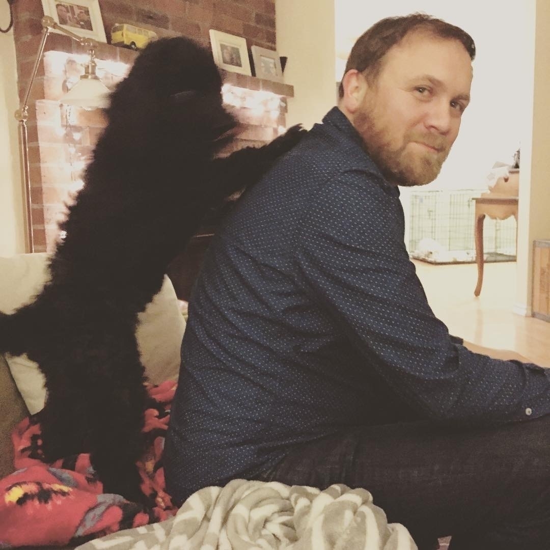 Our little monster with the sneak attack ear licks.