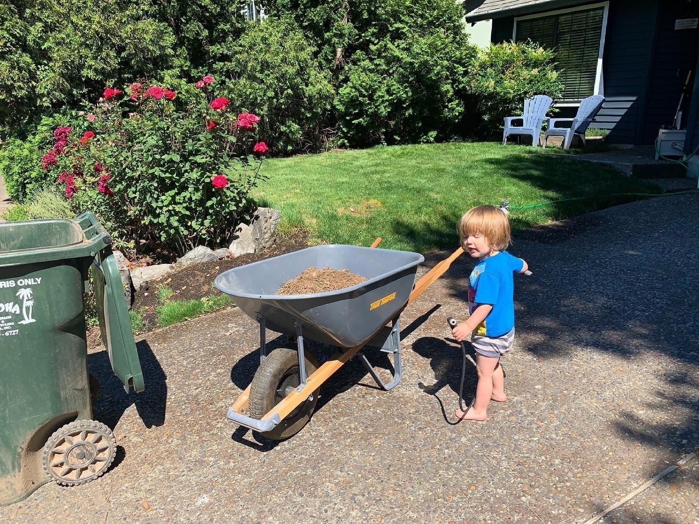 Back to 2021 June 19, 2021 at 5:52 PM Wanted to help me pump up the “back tires” on the wheelbarrow only to find out “there aren’t any dada, we need some new ones.”