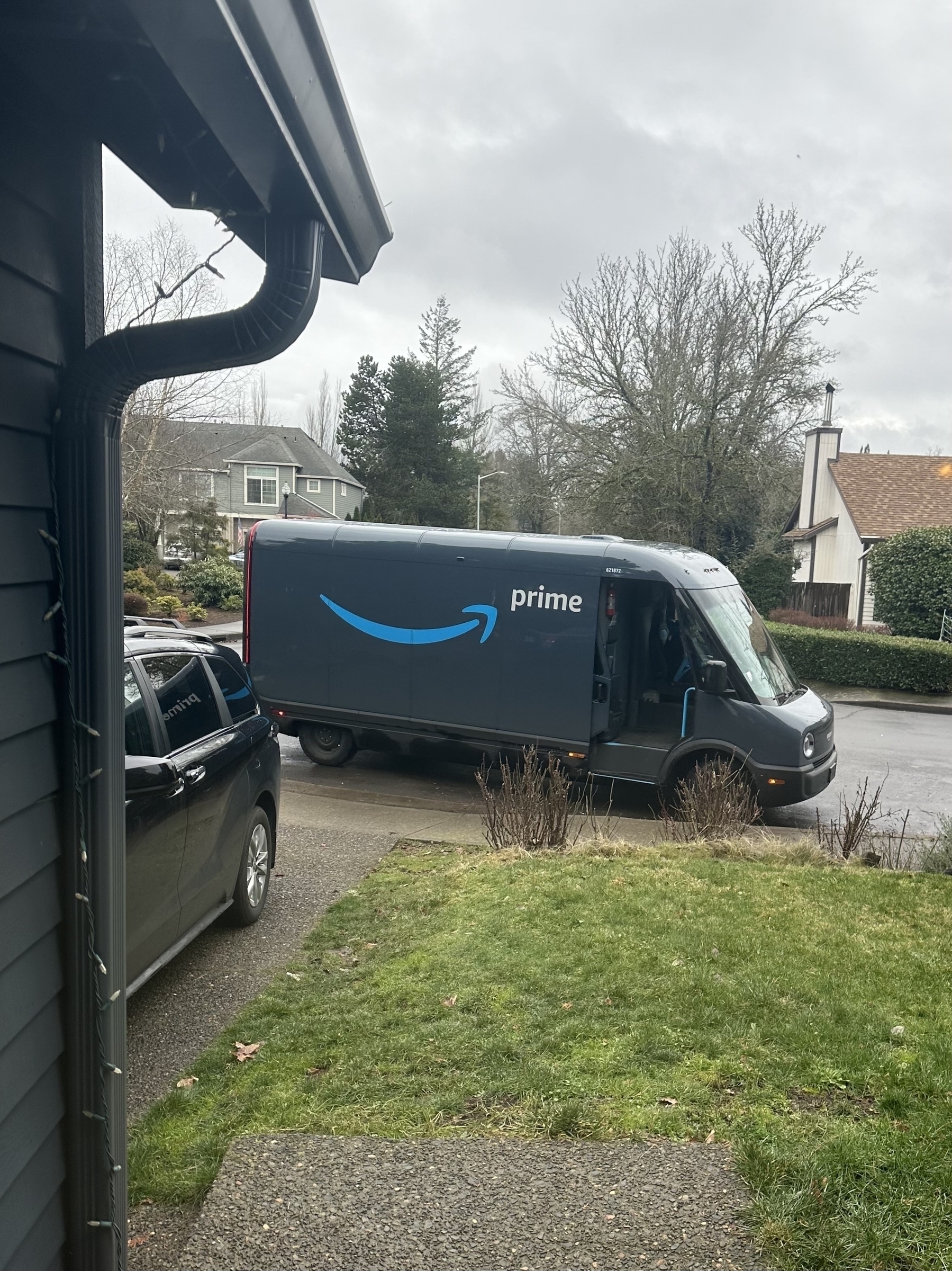 Our first Amazon delivery from a Rivian electric cargo van.