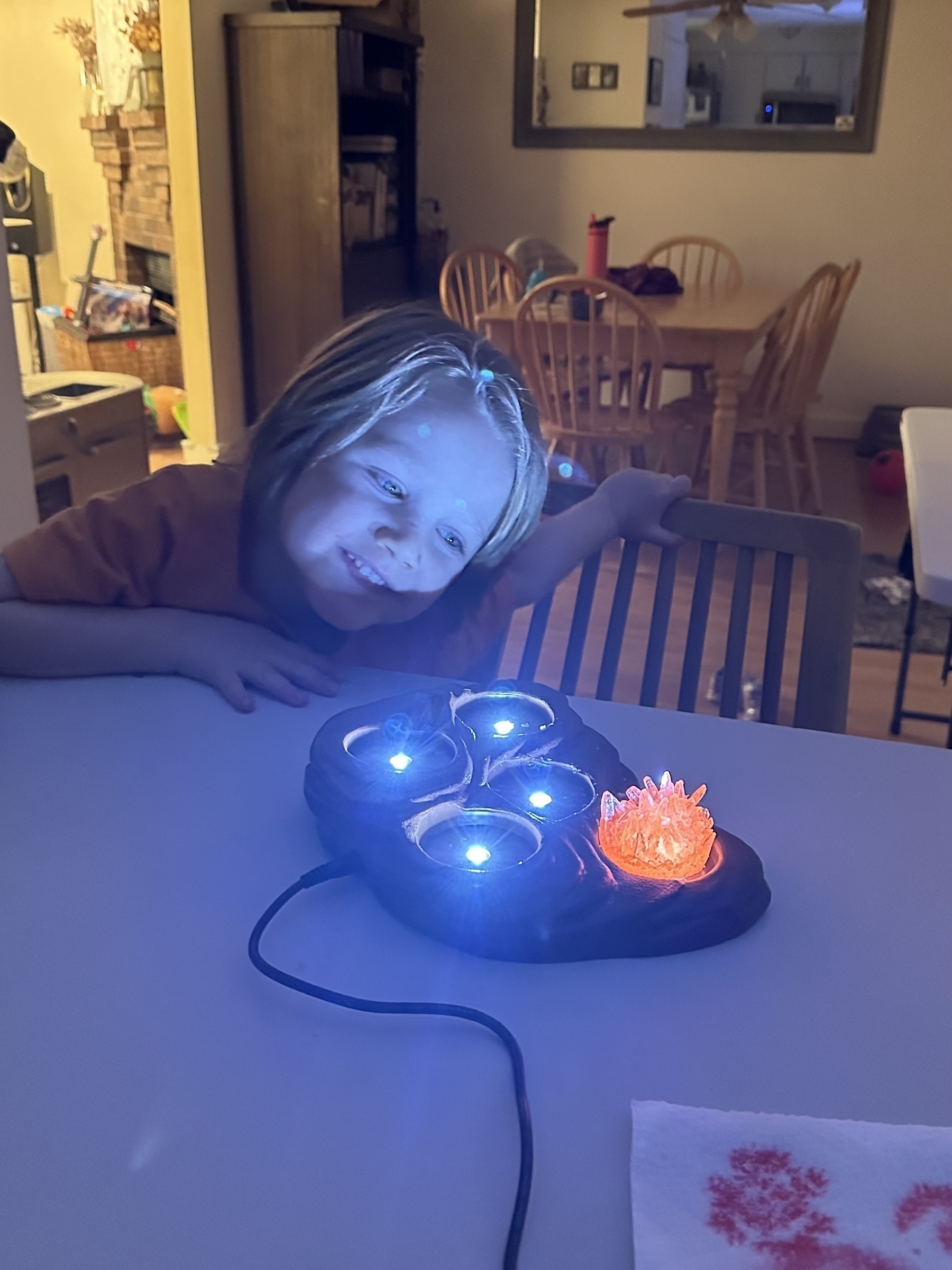 Back to 2024 January 21, 2024 at 1:05 AM We grew some crystals this week and unveiled one tonight. He’s pretty excited about it.