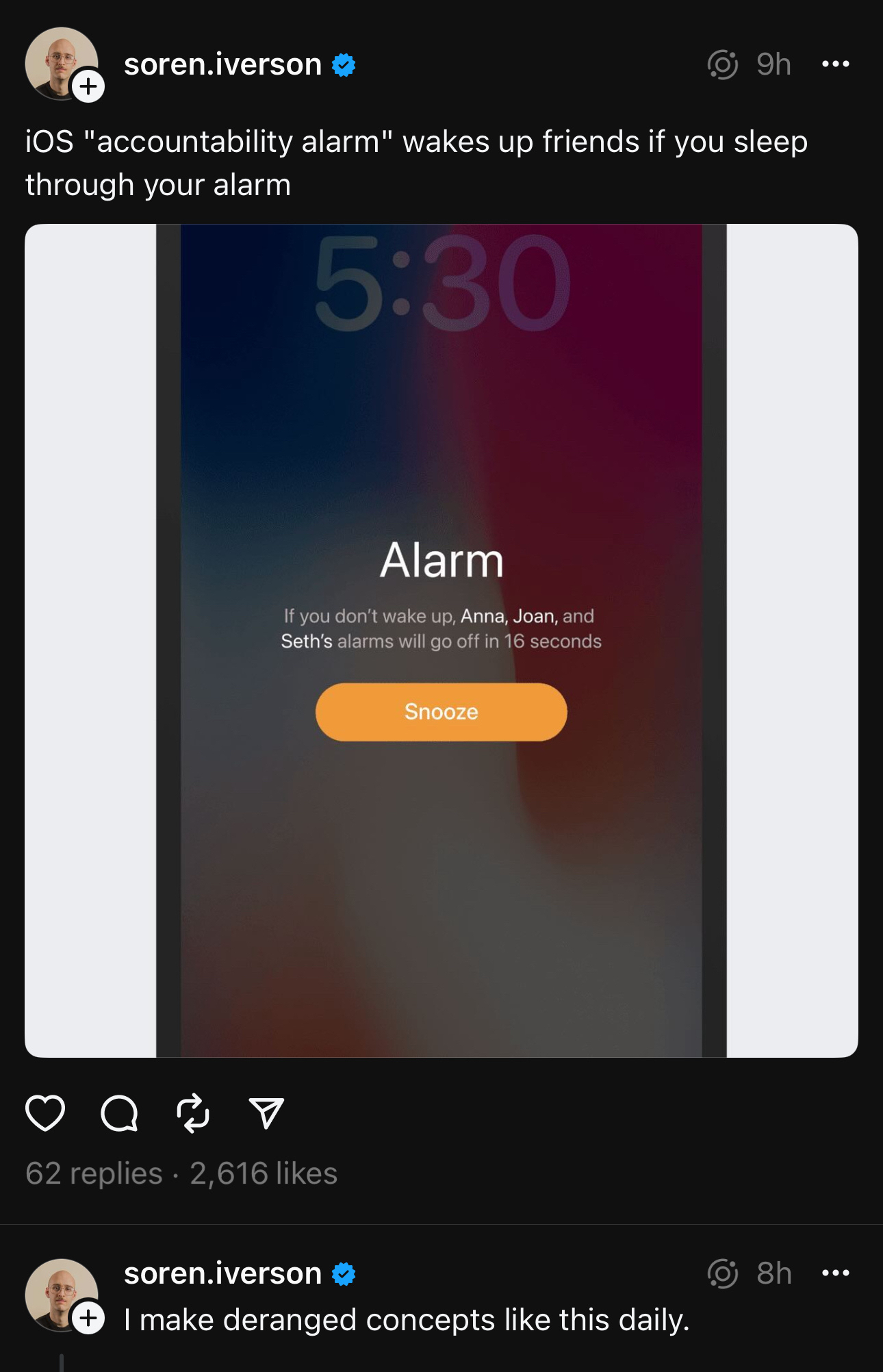 Back to 2024 April 15, 2024 at 11:24 PM Awesome idea, but so help me God, if I’m your accountability partner and you wake me up more than once, we are no longer friends.